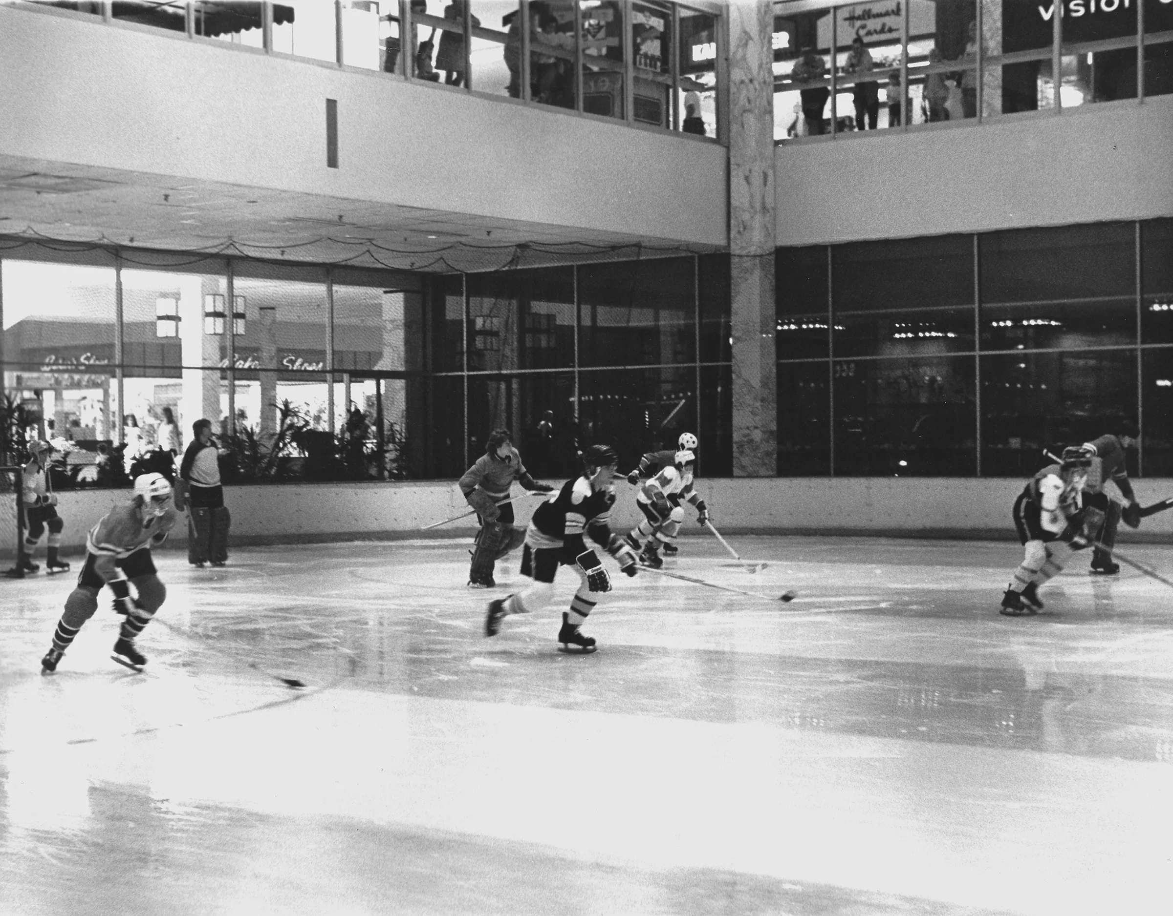 Though Don-Mark Realty said the new rink was a gift to the community, it opened during a proliferation of indoor ice rinks, then a novelty, in the 1960s. There was also a sort of feedback loop between the mall and the Ice Palace: shoppers were drawn in to skate and skaters would stay at the mall to do their shopping. A hot dog stand called Pup-A-Go-Go (which outlasted the rink, eventually slotting into the new food court) served snacks at the rink’s entrance, and at one point Mock was told it was the highest-grossing business in the mall.